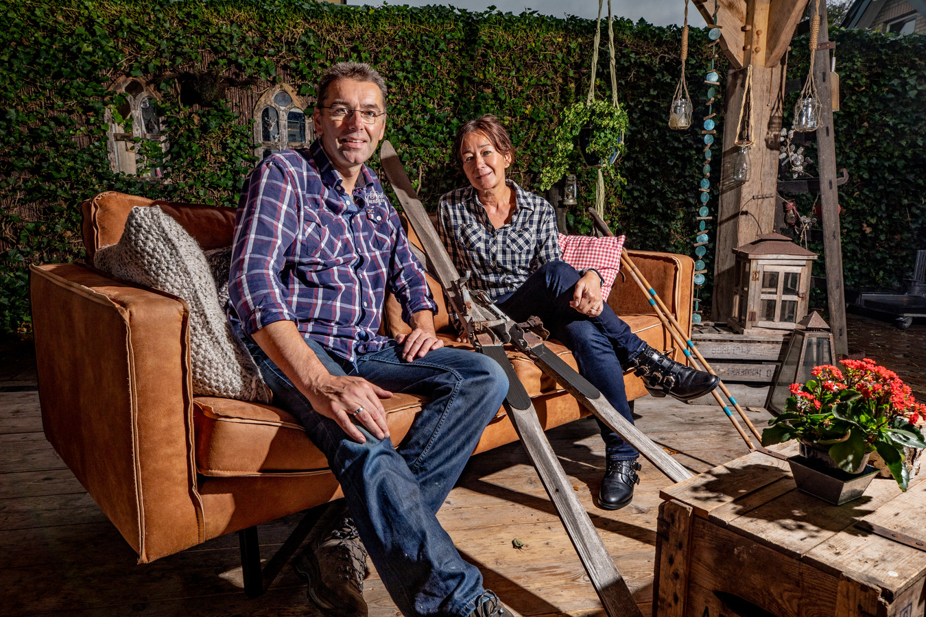 Deze kleurrijke tafels en banken (Cheek) staan in ...